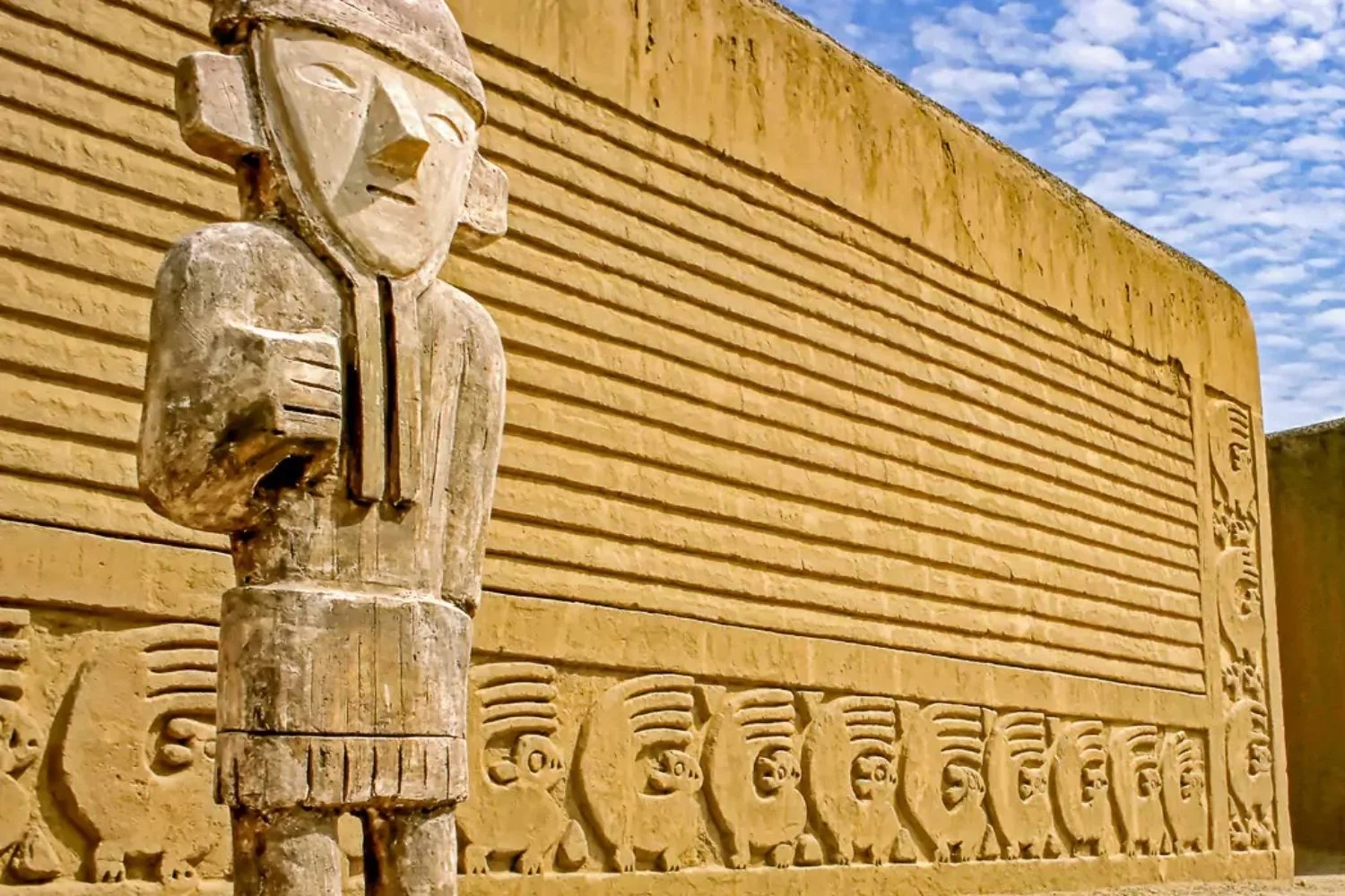Huaca de la Luna is decorated with multicolored friezes, one of which covers nearly an entire side of the pyramid. Approximately 160 miles to the north, near the town of Chiclayo, lies the ancient Moche burial site of Sipan, or Huaca Rayada.